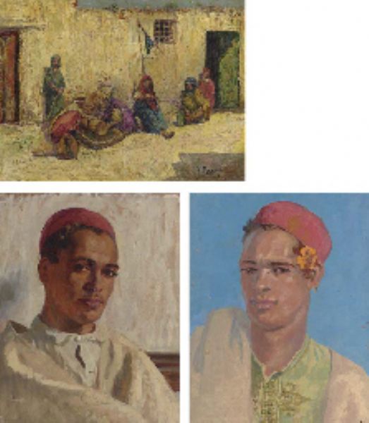 | Village Scene in the Magreb; a pair of Portraits of Tunisian Men | |