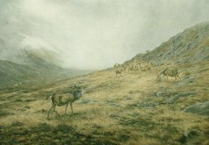Stags in a highland landscape