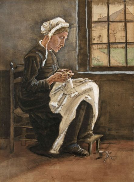 Die Näherin beim Fenster – Woman sewing by the Window, facing right