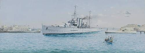 County Class Cruiser leaving the Grand Harbour, Valletta
