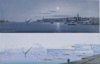 Maltese harbour and Maltese harbour by moonlight