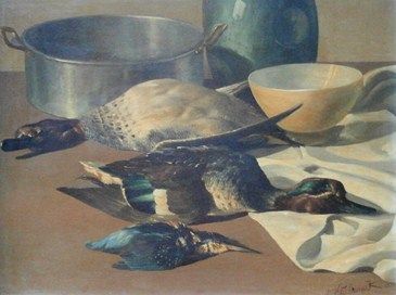 Still life - dead birds beside cooking pot