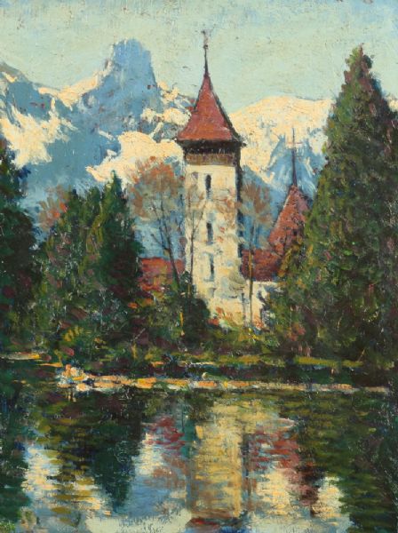 | LITTLE OLD PROTESTANT CHURCH ON THE SHORE OF LAKE OF THUN AT SCHLERZLIGEN | |