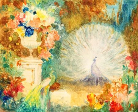 Lot of Four Garden Views with Exotic Birds
