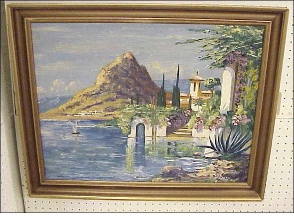 Mediterranean scene of a town by the waterside