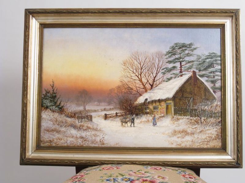 | A Winter landscape with figures on a path by a Cottage, said to be near Kenilworth | |
