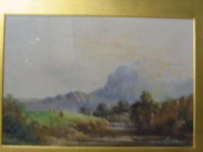 | Welsh Mountain Scene with Figure and Cattle by a River | |