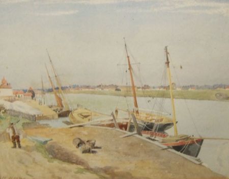 East Anglian River Scene with Moored Barges