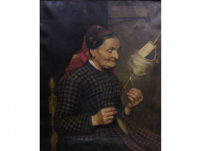 old lady spinning wool