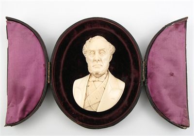 Ivory in an oval velvet lined case