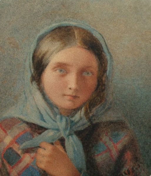 Portrait of a girl wearing a tartan shawl