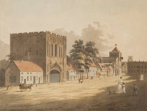 | Four views of Bury St Edmunds: East View of Bury St Edmunds; View of Angel Hill, Bury; Abbey Gate, Bury; St. James's Tower, Bury | |