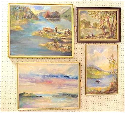 | all are water scenes, one with figures in a boat, one with figures on the shore near two boats, and the last a seascape | |
