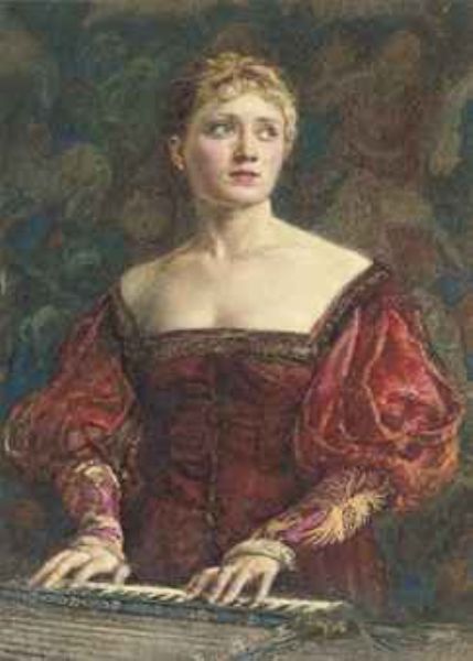 | Young lady in Renaissance-style dress at a harpsichord | |