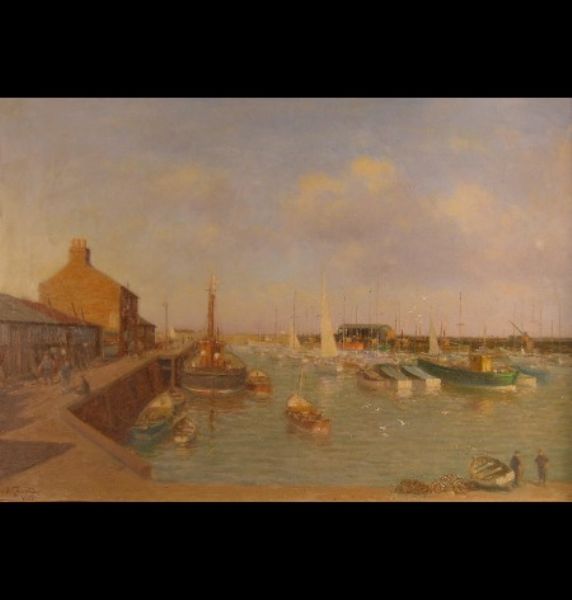 | a view of Bridlington harbour with fishermen on the quayside | |