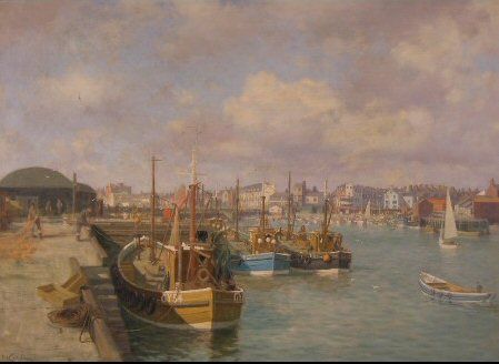 Bridlington harbour with fishermen unloading the catch
