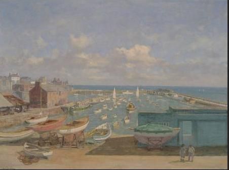 Bridlington harbour with numerous moored vessels