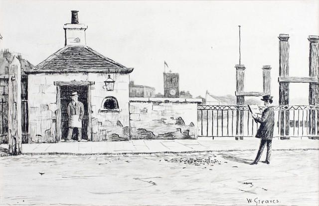 Whistler sketching Toll House, Old Battersea Bridge, Chelsea