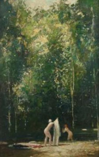 Badende im Wald