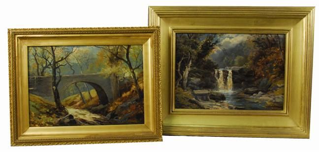 FOREST LANDSCAPE WITH WATERFALL and LANDSCAPE WITH BRIDGE