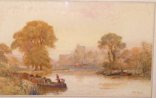 Figures boating on the river before Windsor Castle