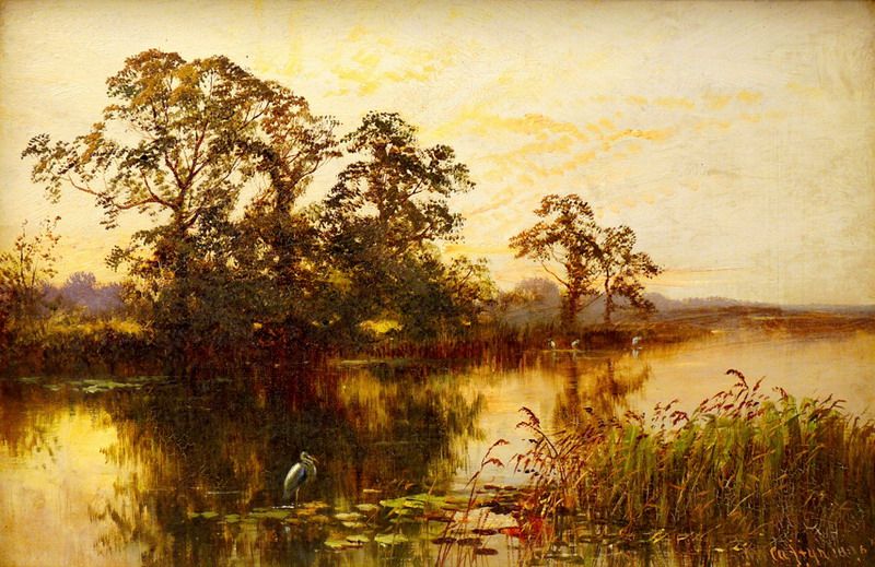 A RIVER LANDSCAPE WITH A HERON; A CORNFIELD