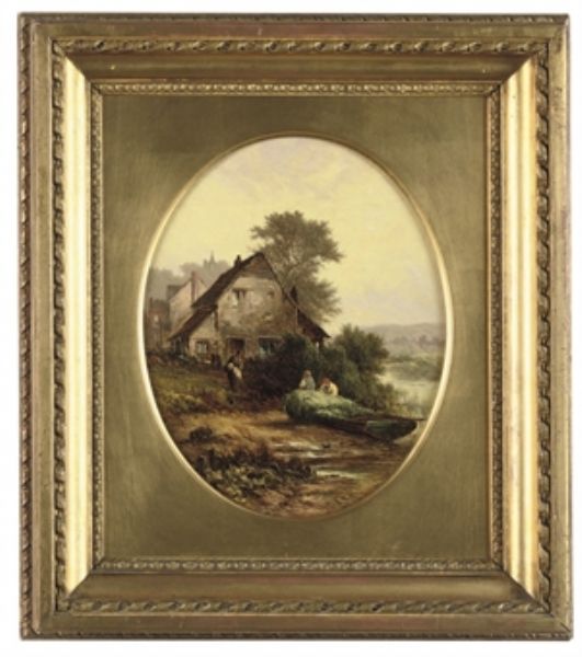 Figures by a cottage in a river landscape; and The afternoon rest, harvesting wheat