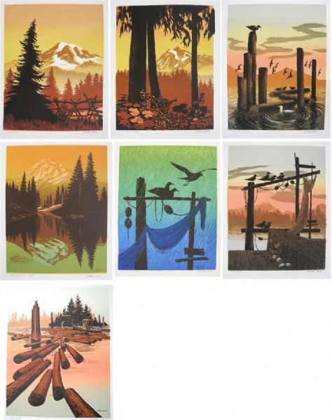 | Sentinel, "Reflection Lake," "Log Jam," "Fish Nets," "Winter Gulls," "Evening Gulls" and "From the Forest." | |