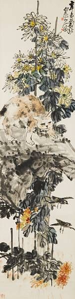 Cat and Chrysanthemums