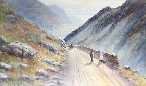 Sychnant Pass, with travellers, horse and cart before an extensive landscape