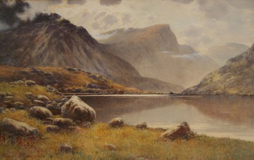 | View of a Welsh Lake with Figures in a Rowing Boat within a Mountainous Landscape | |