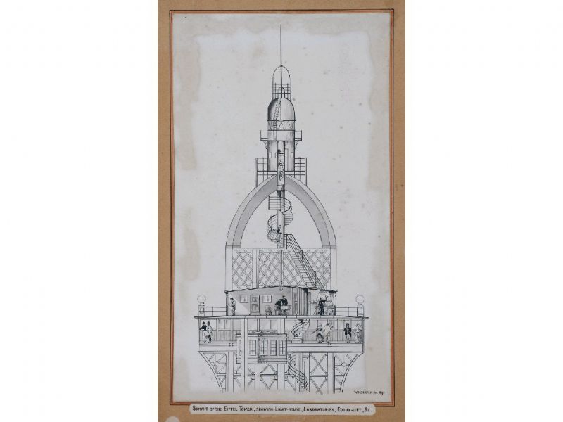 Summit of the Eiffel Tower showing Lighthouse Laboratories Edoux-Lift