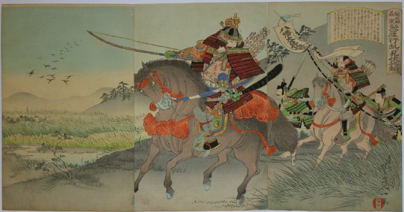 Generał Hachiman Taro Yoshiie w bitwie pod Go-San-Nen - tryptyk