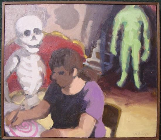 Artist with Skeleton & Green Ghost