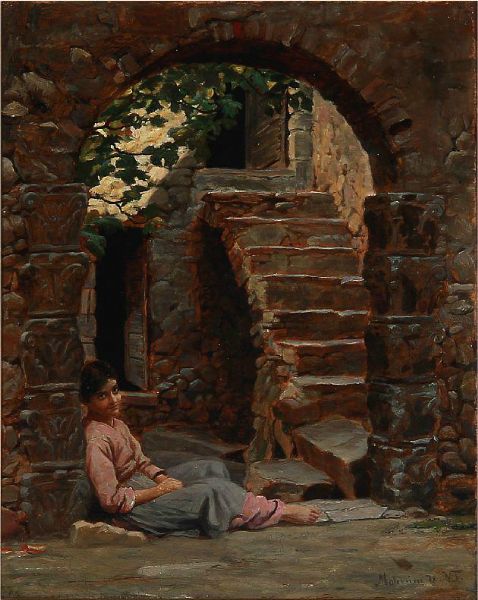 | An Italian girl sitting at a stone staircase in Malcesine, Italy. | |