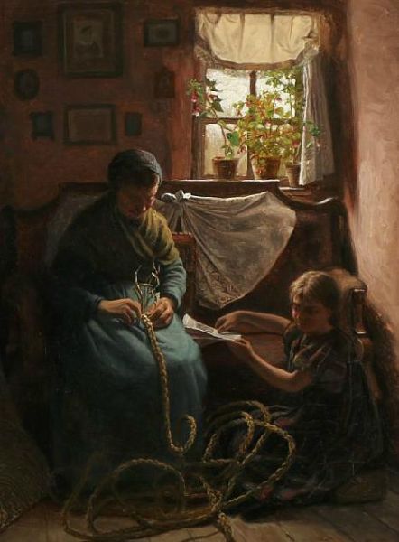 | Ung Pige med sit Haandarbejde. Young girl with her needlework | |