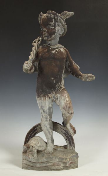 Baby Mercury Holding Staff with Foot on Arch Near Tortoise