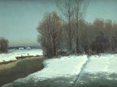 PEJZAŻ ZIMOWY Z POTOKIEM
