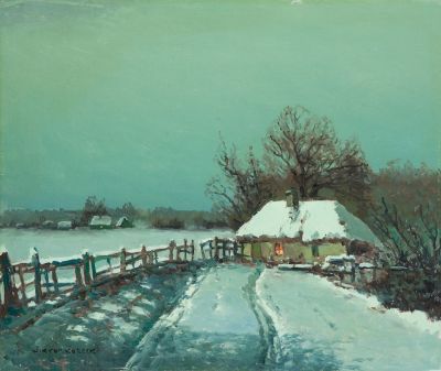 Zimowy pejzaż z chatami
