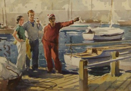 Figures Conversing on Harbour