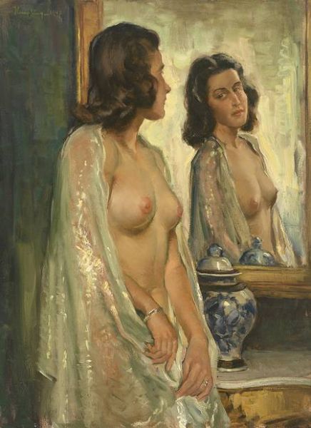 | Dreiviertelportrait eines weiblichen Aktes vor Spiegel | |
