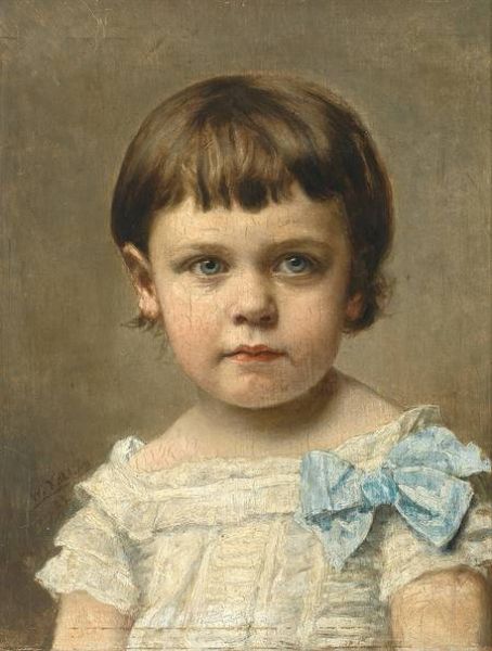 | Portrait eines kleinen Mädchen mit weißem Spitzenkleid und blauer Schleife | |