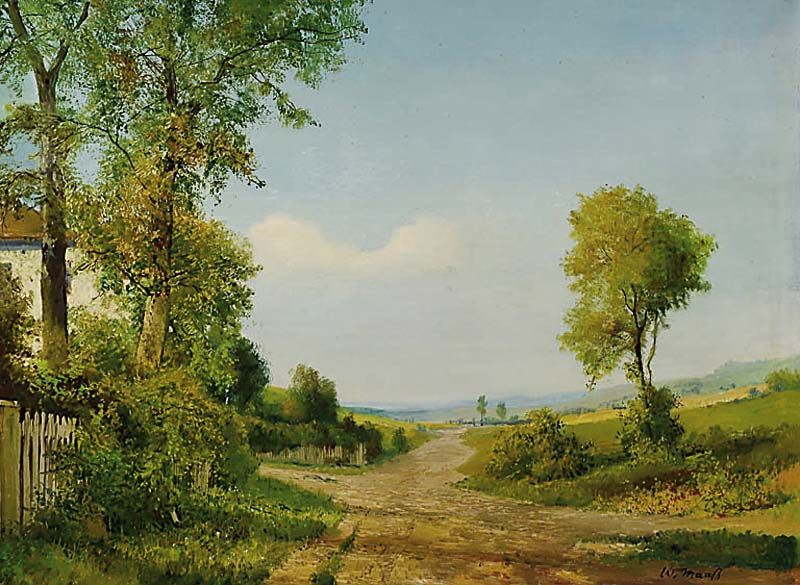 Studium an der Akademie Leipzig, Sommerliche Landschaft mit Bäumen und Gehöft