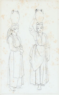 Two studies of a woman with a water jar on her head