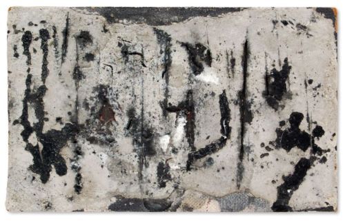 Lack und Tusche auf Malpappe.
