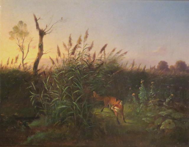 A Fox Eying Ducks in a Marsh