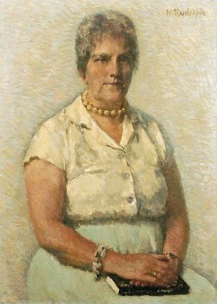 Bildnis einer Dame mit Perlenkette und Buch. Späte 1950's
