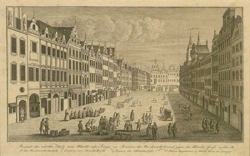 | Widok północnej strony rynku wrocławskiego. Naschmarkt (Targ Łakoci) | |
