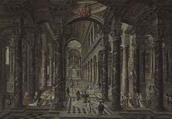 | Interior of a Baroque church with elegant figures | |