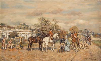Aufbruch zur Jagd vor Schloss Sanssouci in Potsdam bei Berlin,